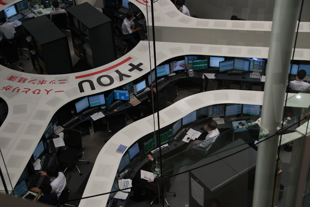Pictures on the walls of the observation deck show a bustling trading area. That is history. Down in the trenches a few people are watching their screens.