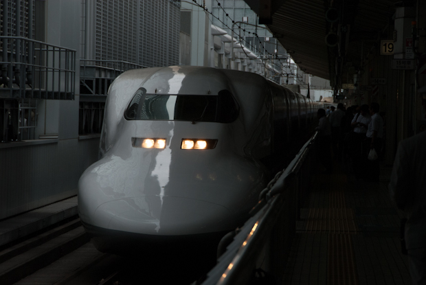 There was a time when for me the Shinkansen ranked on a coolness level slightly lower than the Space Shuttle. I won’t ride the Space Shuttle, but I finally stand on the platform and see the Shinkansen glide into the station.