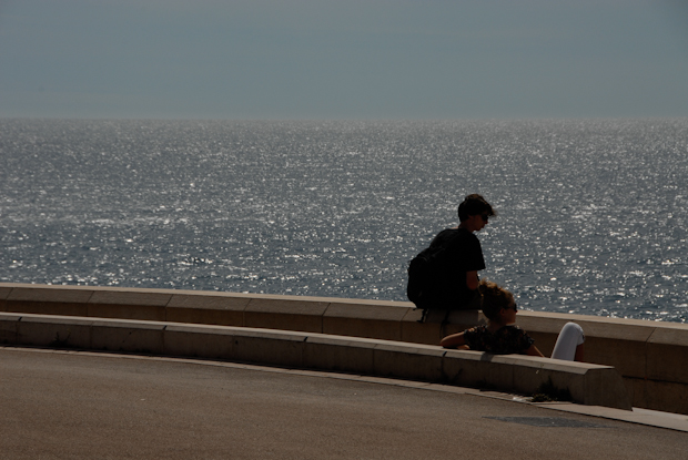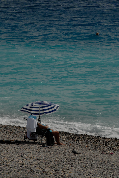 After a scenic train ride along the mediterranean coast of France I arrive in Nice-Ville. I have one more day in France. I look at the sea.