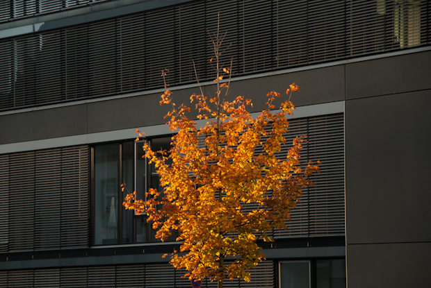 Grey seems to dominate this autumns fashion. An occasional backpack indicates that not everybody is here on business.