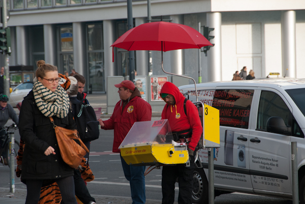 I spend some time in the food courts of the KaDeWe. When I leave, the sun has set, but it is not dark.