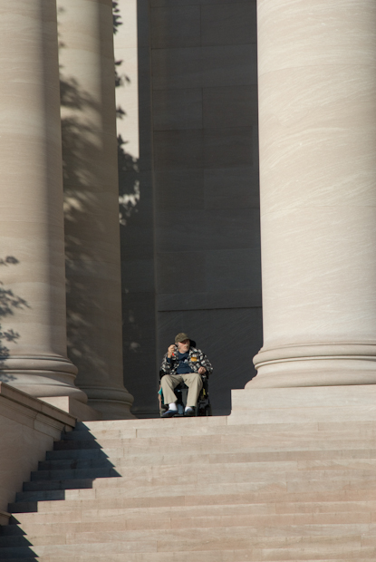 Finally, when the building across the street took the sun from us, we left. The man next to us had been waiting when we arrived. He stayed.