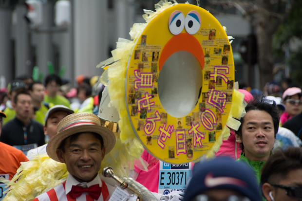 Marathon Day in Tokyo. I am in no shape to run, but I can watch the heroes.