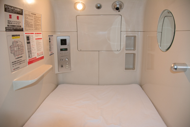 There is a cafeteria, a big library that consists exclusively of mangas, a large washroom and several rows of comfortable deck chairs that face a wall of TV screens, all showing different programs with the sound turned off, all this under the ever watching eyes of a multitude of surveillance cameras. I do not linger and go straight to the capsule.