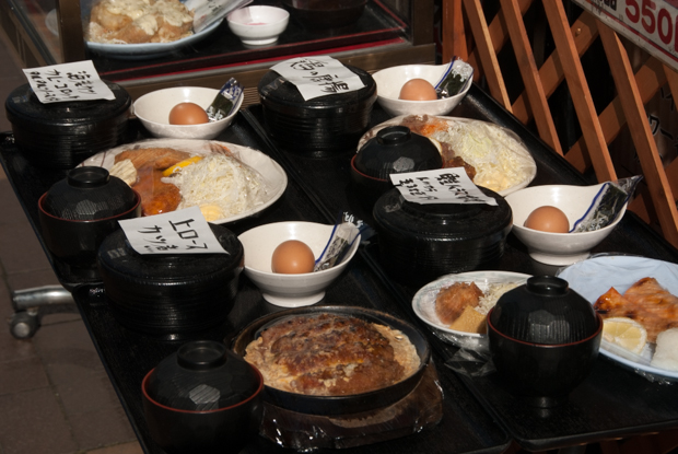 Some restaurants have live displays on the street.