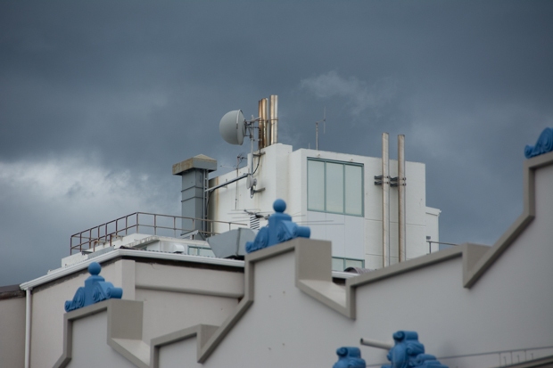 I thought I escaped Cyclone Lusi when I left Auckland in horizontal rain. Well it caught up with me. The severe weather warning did not. Now I am stuck for hours in a building that normally has a panoramic view on Wellington. All I see now is a Wall of Grey. There is glass all around me: Torrential rains pummel it, severe winds push it.