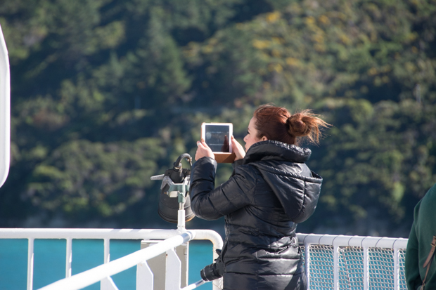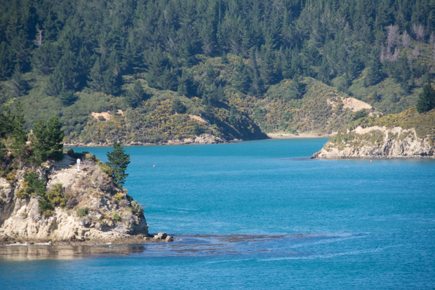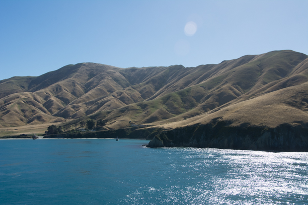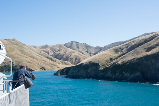 I leave the North Island. The ferry hits a rough sea. Well, it is actually the other way round. Sea sickness grabs my stomach. I stay on deck, use the steady horizon and the fresh air as remedy. Then we enter the calm waters of the Marlborough Sounds.