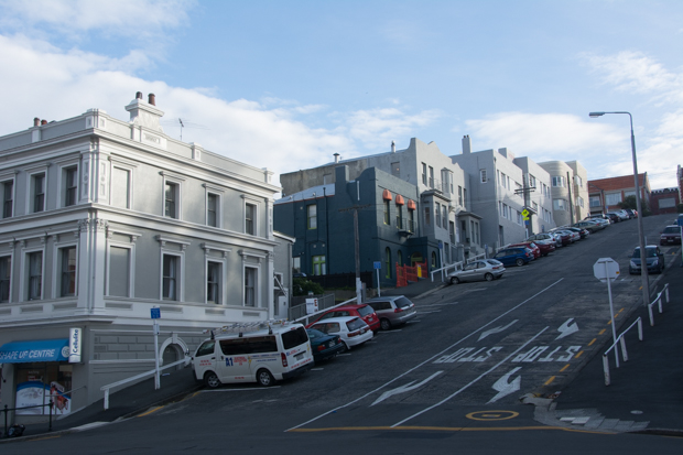 I reach a more densely populated area on the east coast. The city climbs up the hills.