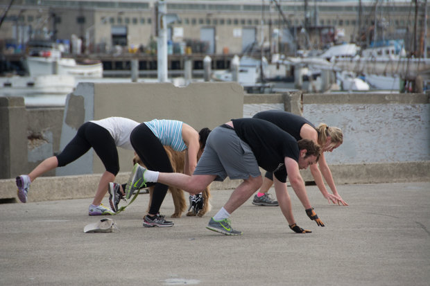 The locals work out; in the water …